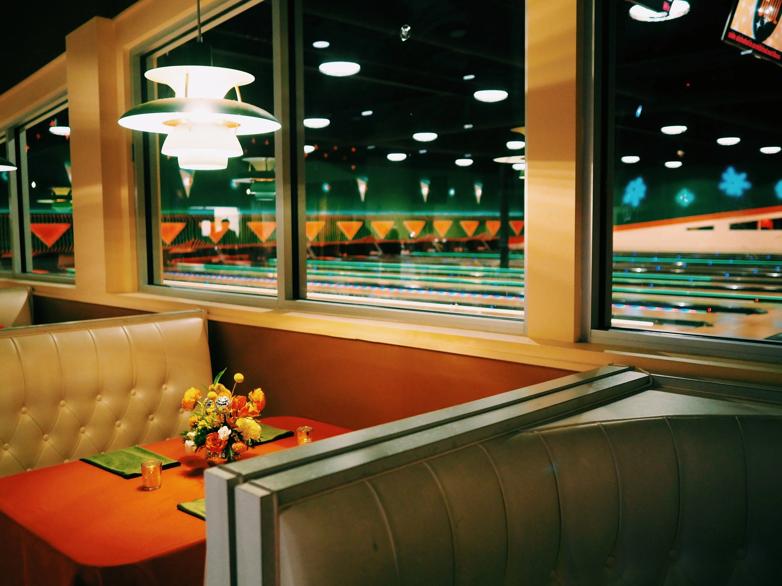 This employee holiday party transformed Eastside Bowl into a groovy, retro-inspired celebration that balanced laid-back fun with elevated design. Produced by The Greatest Show Event Management Co., the evening was designed as a thank-you to the team, blending interactive entertainment, rich textures, and a warm holiday atmosphere that felt effortless and inviting.
